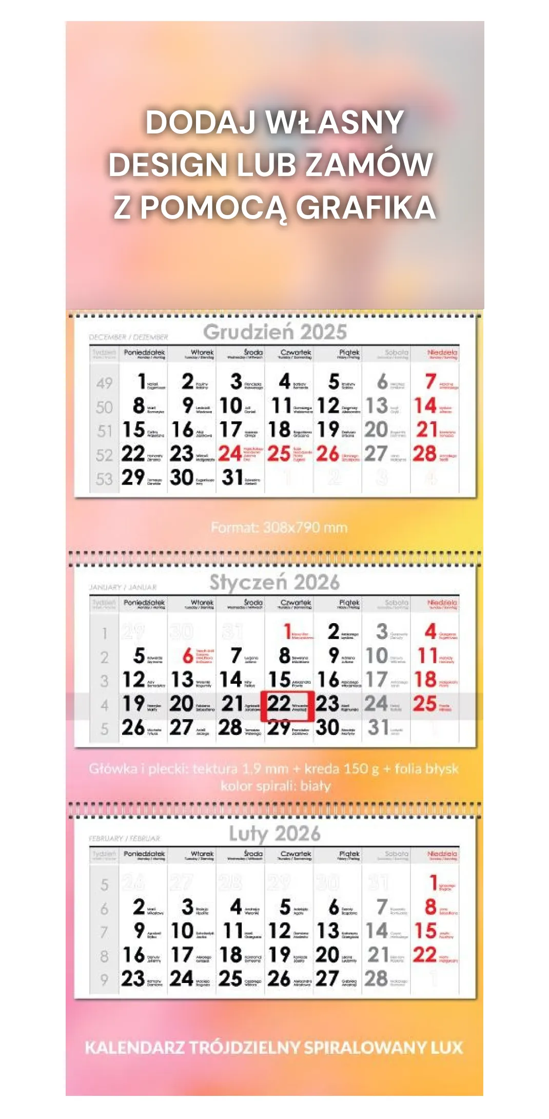 Współpracujemy z największymi agencjami w Polsce i za granicą dostarczając miliony kalendarzy każdego roku. Oferujemy szeroki wybór kalendarii oraz możliwość dostosowania projektów do specyficznych wymagań, w tym także wersje wielojęzyczne.