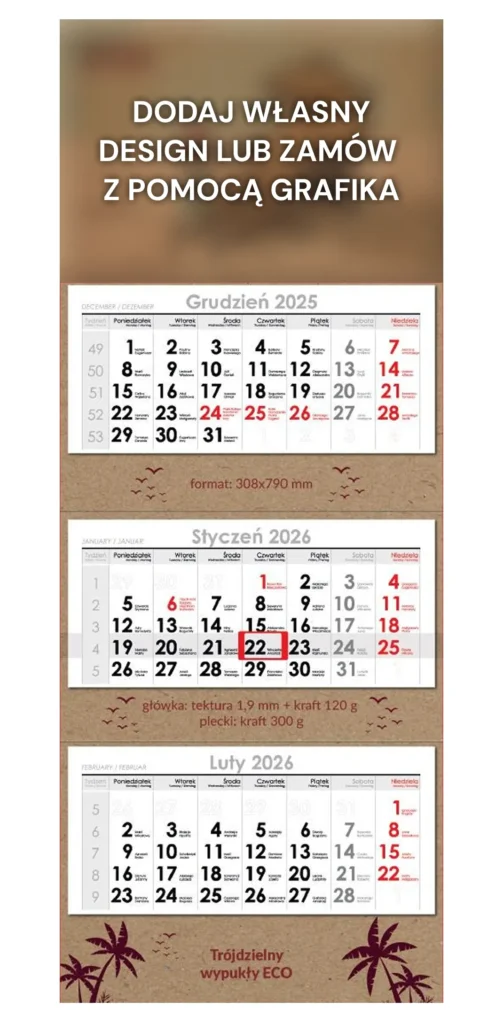Współpracujemy z największymi agencjami w Polsce i za granicą dostarczając miliony kalendarzy każdego roku. Oferujemy szeroki wybór kalendarii oraz możliwość dostosowania projektów do specyficznych wymagań, w tym także wersje wielojęzyczne.